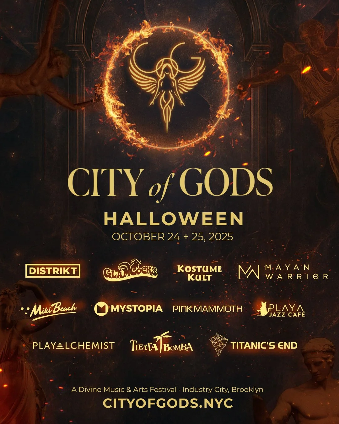 City Of Gods Halloween 2025 Friday, October 24, 2025 10:00 PM 22:00 Sunday, October 26, 2025 5:00 AM 05:00 Google Calendar ICS BUY TICKETS